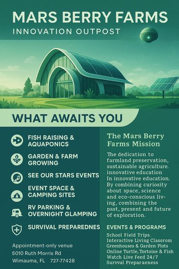 Our team is dedicated to farmland preservation, sustainable agriculture, and innovative education. By combining learning, adventure, and eco-conscious living, the venue inspires curiosity about space, science, and self-sufficiency. Whether guests are exploring aquaponics, camping under the stars, or navigating wonderous attractions.